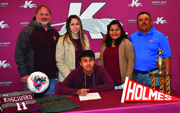 Kosciusko mid-fielder Alfredo Marin on Friday inked his commitment to continue his athletic and academic careers at Holmes Community College. The senior soccer standout made his commitment official during a ceremony at the school library.