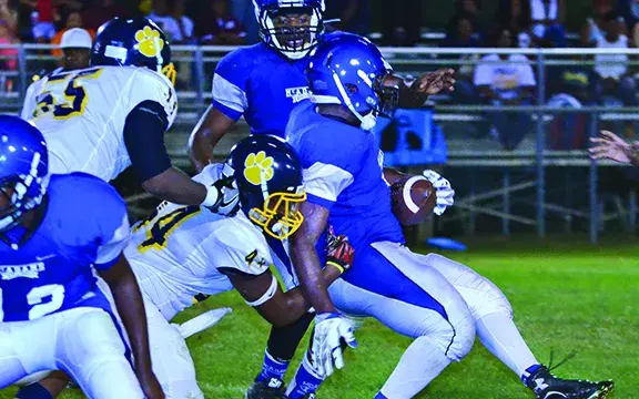 Early in the second quarter Zy’Tavia Ball scored on a two-yard run, conversion failed, to take a 26-0 lead over Montgomery County. The Bulldogs quickly regained possession after a John Bayne interception near the Bulldogs’ 39-yard line. One play later, Ball found Kris Brown with a 61-yard strike to increase the Bulldog lead to 32-0.