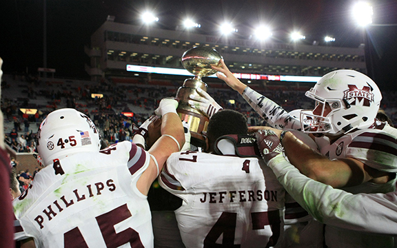 On the mindset going into the 89th Egg Bowl Mississippi State head coach Dan Mullen said, “I figured we could win since they have a new quarterback, but they give you some issues. They were going to move and twist and I think the fact that we were able to establish the run early got them out of what they were trying to do defensively. We had to keep kind of mixing up the looks and formation to run the ball out of to keep them on their toes. This game is awesome. This is the eighth time I have played in this game. I’m not going to say it is the biggest and I am not going to say it is little. Every time you win it it is awesome and every time you lose it it is awful because it sticks with you. What an unbelievable feeling to come in and get that win and bring that trophy back to Starkville.”