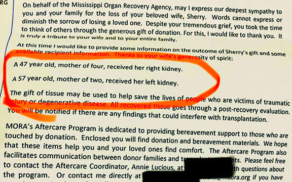 Her family recently received notification that the donation of Ingold’s kidneys allowed medical personnel to save the lives to two other mothers — a 47-year-old mother of four and a 57-year-old mother of two.