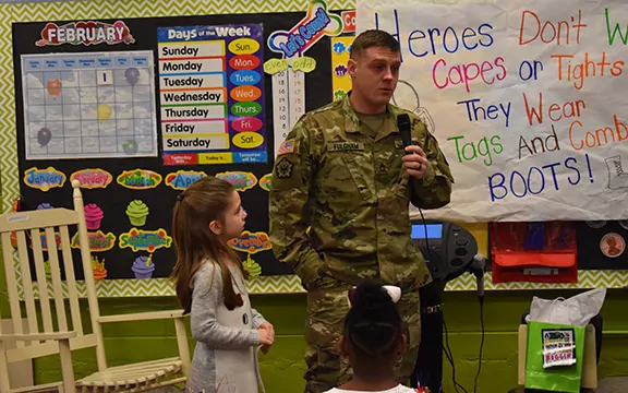 When U. S. Army Staff Sergeant Travis Fulgham dropped by Kosciusko Lower Elementary early this week to drop of his daughter’s snack money, he had no idea where it would lead. Fulgham’s daughter Paisley is a first-grader at the school.