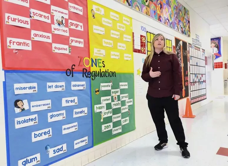 “For the next 10 minutes, the students all discussed their feelings, saying ‘Oh, I’m in the red zone when I’m taking a math test’ and joking like that, but then also sharing what coping skills work for them,” Sims said. “So the teacher then led almost a group therapy session.”