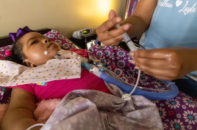 Layla requires 20 hours of nursing care a day due to a litany of complex medical conditions. She was born with lissencephaly, which literally means “smooth brain,” a rare brain malformation characterized by the absence of normal folds in the cerebral cortex. She also suffers from scoliosis, chronic respiratory failure and pyruvate dehydrogenase complex deficiency, among other conditions.