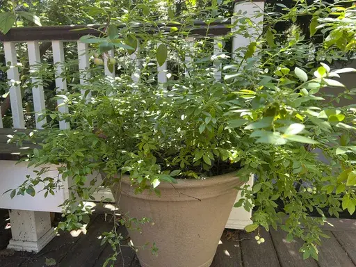 With the exception of rabbiteyes, which must be cross-pollinated with other varieties (three or more is best) in order to produce fruit, most varieties are self-pollinating. Still, planting two or three different varieties together will result in bigger berries and a larger crop. That’s why I planted my Sapphire Cascade and Midnight Cascade plants in the same large pot on the back deck.