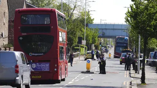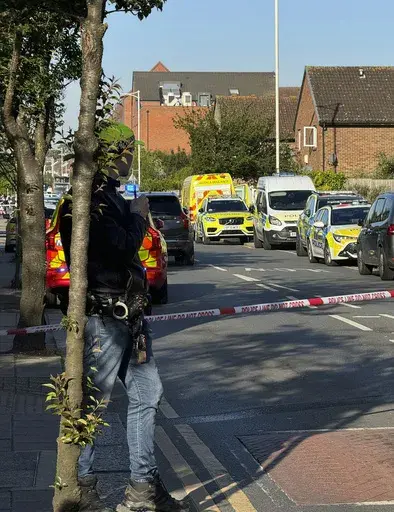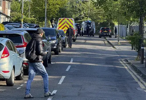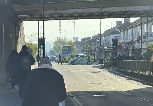 LONDON (AP) — A man wielding a sword attacked members of the public and police officers in a northeast London suburb Tuesday, killing a 14-year-old boy and injuring four other people, British authorities said.