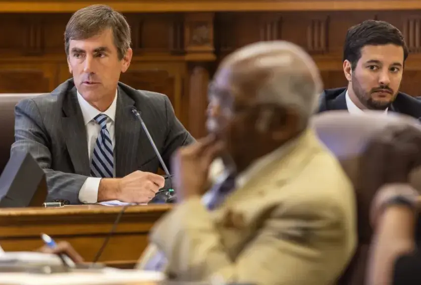 Senate Appropriations Committee Chairman Briggs Hopson, R-Vicksburg, left, talks with committee members about the proposal for a $247 million economic development project during a special session of the Mississippi Legislature in Jackson, Wednesday, Nov. 2, 2022. Credit: Eric Shelton/Mississippi Today