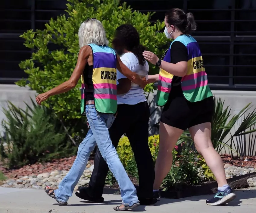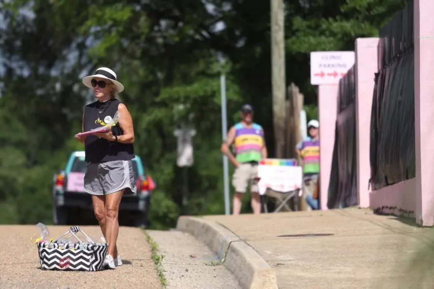 Clinic escort Rose Kasrai leaves the Jackson Women's Health Organization in Jackson, Miss., Wednesday, July 6, 2022. The clinic must stop providing abortions after a judge refused to block the state’s trigger law from taking effect. Credit: Eric Shelton/Mississippi Today