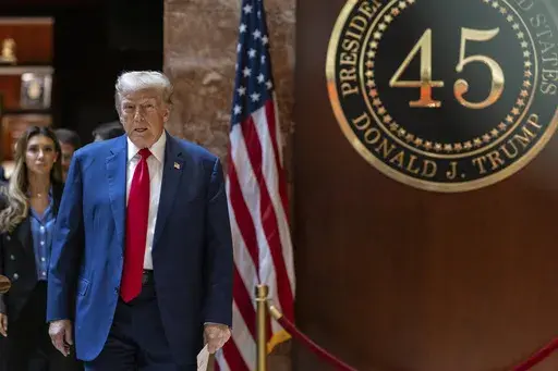The Republican nominee and his accuser, E. Jean Carroll, a writer, sat at tables about 15 feet (4.5 meters) apart, in a Manhattan federal appeals court. Trump didn't acknowledge or look at Carroll as he passed directly in front of her on the way in and out, but he sometimes shook his head, including when Carroll's attorney said he sexually attacked her.