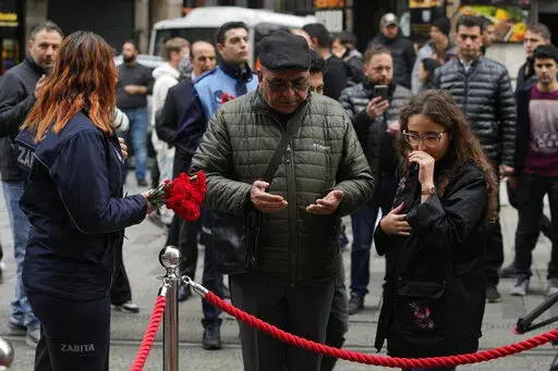 Istiklal Avenue was reopened to pedestrian traffic at 6 a.m. Monday after police concluded inspections. People began leaving carnations at the site of the blast, while the street was decorated with hundreds of Turkish flags.
