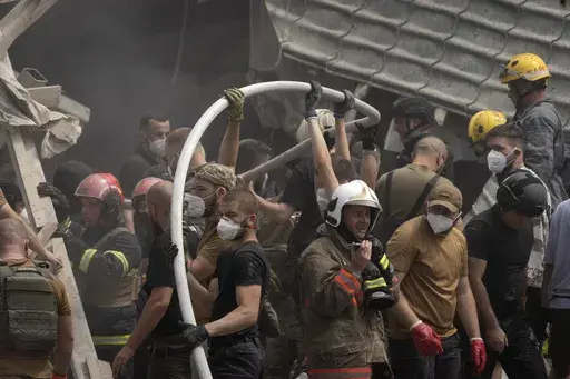 KYIV, Ukraine (AP) — Rescuers searched the rubble of Ukraine's biggest children’s hospital on Tuesday for more dead and wounded, a day after authorities say a Russian missile leveled a wing of the Kyiv facility during a massive daytime barrage that killed at least 42 people throughout the country.