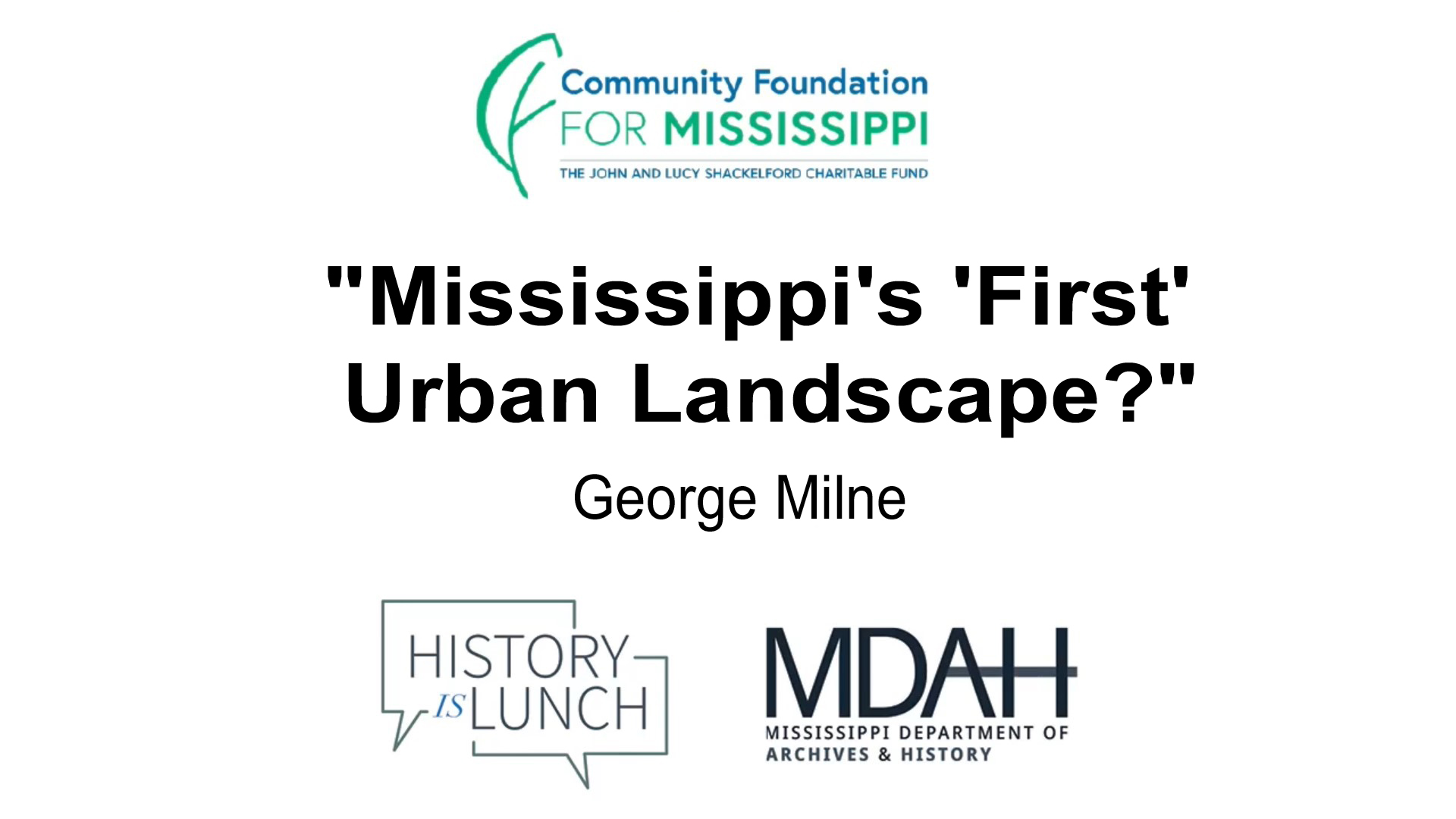 On March 23, 2022, George Milne presented “Mississippi’s ‘First’ Urban Landscape?” as part of the History Is Lunch series.
