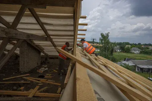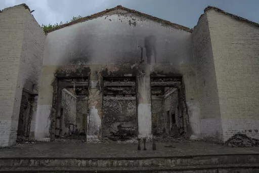 YAHIDNE, Ukraine (AP) — On the outskirts of a Ukrainian village stand the remnants of a small school that was partially destroyed in the early weeks of the Russian invasion.