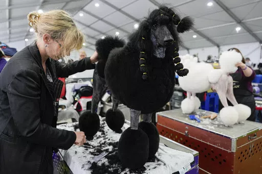 In a nearby grooming tent, Valarie Cheimis petted Csoki, a puli, ahead of ring time.
