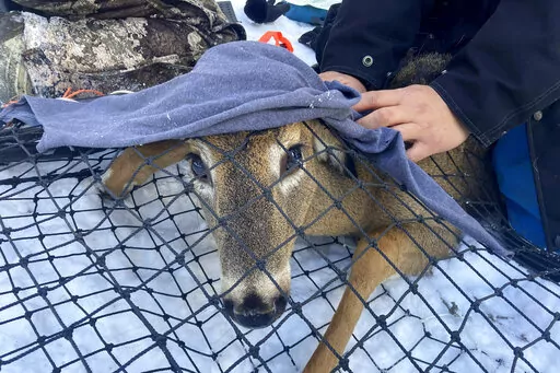 With icy Lake Superior sparkling through the evergreens, Isaac slipped his hand beneath the netting of a deer trap. A colleague straddling the animal lifted its head off the snowy ground so that Isaac could swab its nostrils.